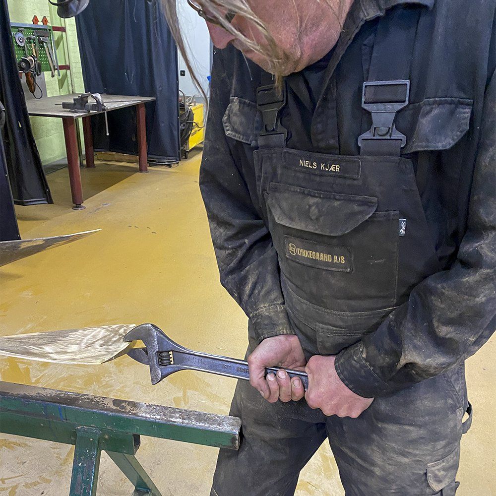 Det er mere enkelt at skære eller slibe for meget af, end at sætte ekstra på. Så det har været en udfordrende opgave på værkstedet at udvide diameteren på propellen ved at svejse et ekstra stykke på og derefter tilpasse det til vinkel og tykkelse.