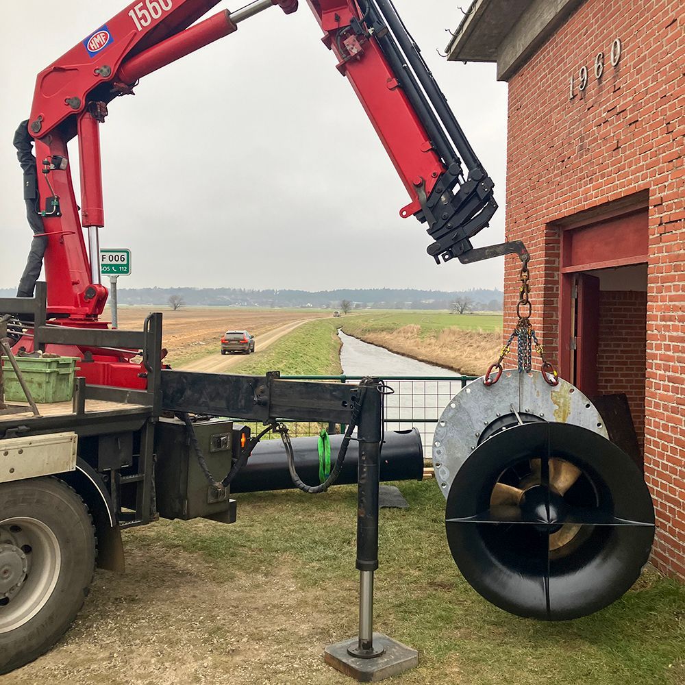 Vi har leveret og installeret en ny pumpe til Landvindingslaget Råby Tørringe ved Randers Fjord. Den skal erstatte én af de tre pumper i pumpestationen, der har kørt siden 1960.