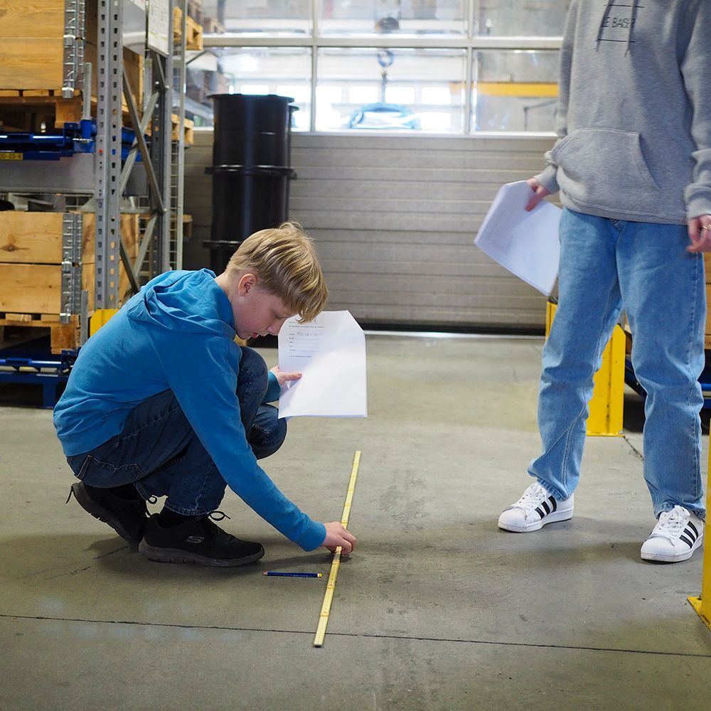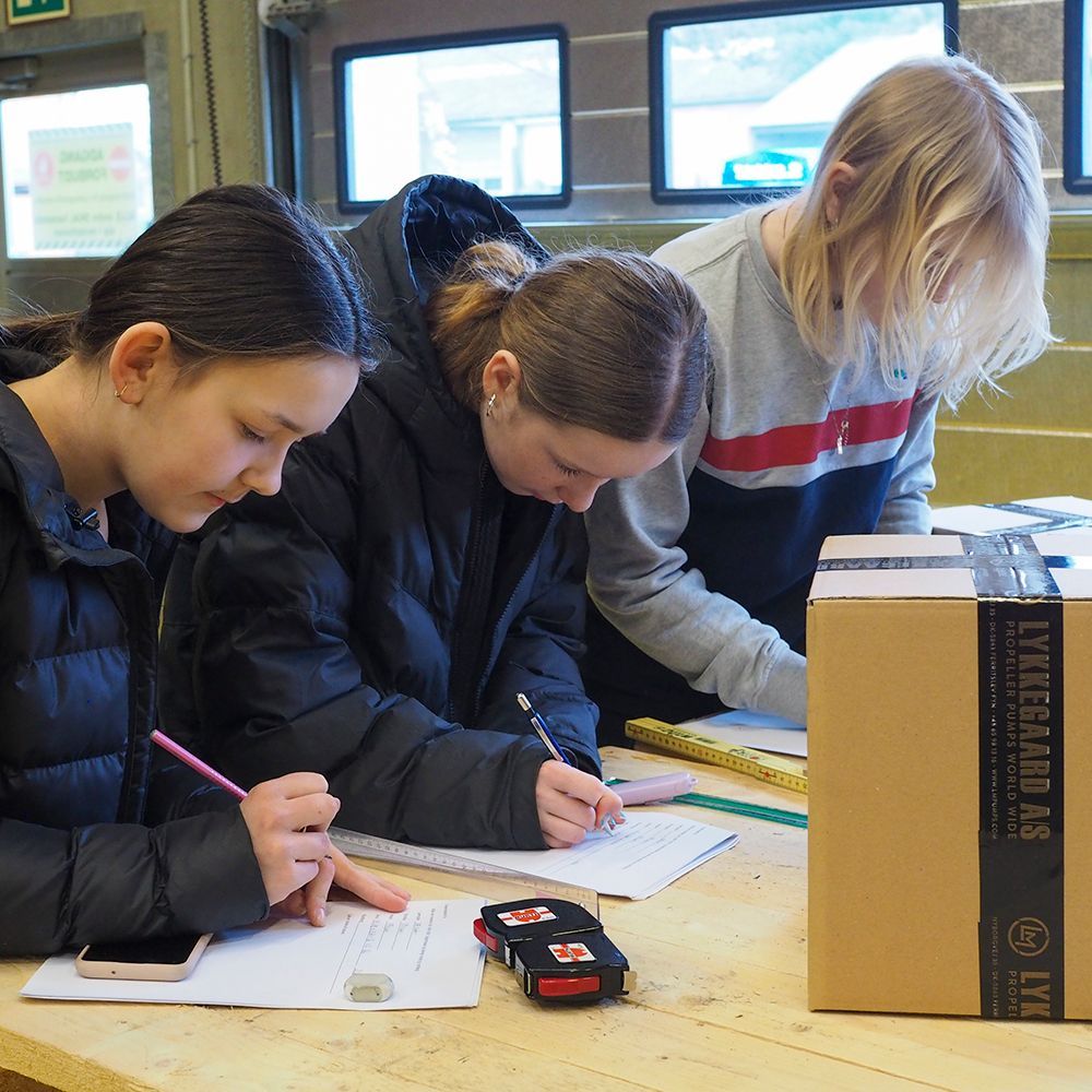 6. klasse fra Rolfsted Skole har rykket en hel dags undervisning ud på Lykkegaard Pumper, hvor eleverne beregner areal og rumfang af pumper, kasser og hele lagerhallen – ud over at de bliver vist rundt. Det gør undervisningen mere virkelig og giver eleverne et indtryk af, hvordan det er at arbejde på en virksomhed som Lykkegaard.